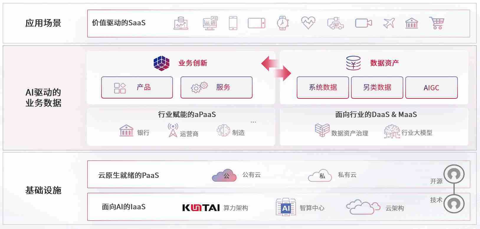 数字时代,,围绕企业数字化转型的关键要素,,,,赏金大对决数码开创性的提出数云融合战略和技术体系框架,,,着力在云原生、、数字原生、、AI原生和信创产业上架构产品和服务能力,,,,为处在不同数字化转型阶段的快消零售、、、汽车、、、、金融、、医疗、、、政企、、、教育、、运营商等行业客户提供泛在的敏捷IT能力和融合的数据驱动能力,,构建跨界融合创新的数字业务场景和新业务模式,,助力企业级客户建立面向未来的核心能力和竞争优势,,,,全面推动社会的数字化、、智能化转型升级。。